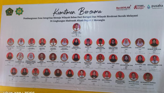 Merangin (man2merangin) --- MAN 2 Merangin, salah satu lembaga pendidikan yang terletak di Kabupaten Merangin, Jambi, terus menggiatkan kampanye zona integritas sebagai bagian dari program Kantor Wilayah Kementerian Agama Provinsi Jambi. Madrasah ini menjadi salah satu pilot project dalam upaya mewujudkan lingkungan pendidikan yang bebas dari korupsi dan birokrasi yang bersih serta melayani.